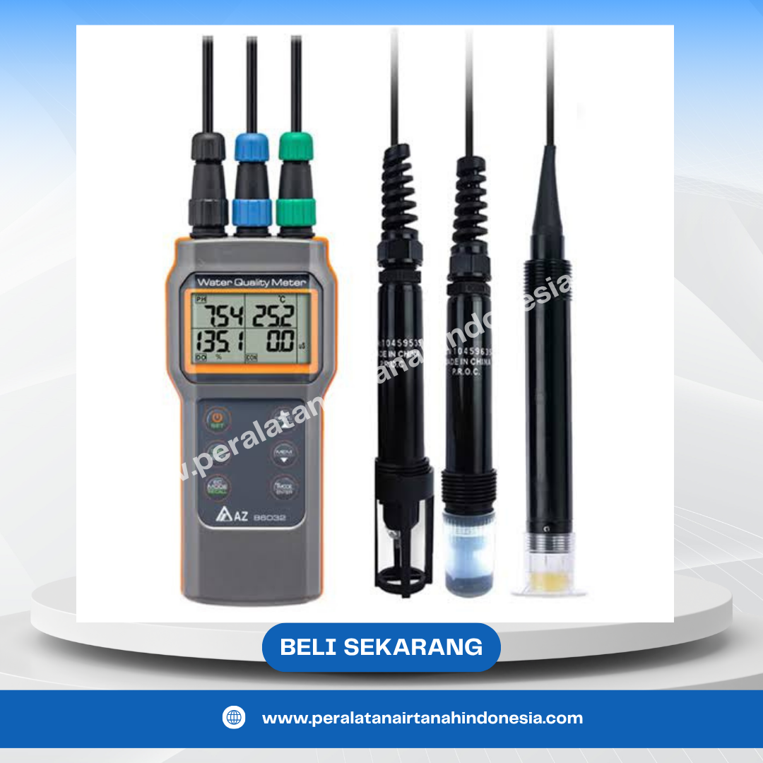 Water Quality Meter adalah alat pengukur kualitas air multifungsi yang dapat mengukur berbagai parameter penting seperti pH, DO (Dissolved Oxygen), EC (Electrical Conductivity), TDS, Salinity, dan Suhu (Temperature) secara bersamaan.